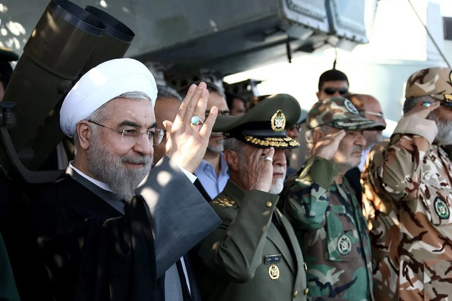 Iranian President Hassan Rouhani, left, at a navy parade in December in the city of Bandar Jask. In her book, Nazila Fathi describes Iran’s fluid politics. (Official Presidential Official Web site via european pressphoto agency)